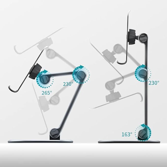 - Industrial-Grade Stability: Featuring a heavy-duty metal base and adjustable arm, this stand can safely support tablets and phones up to 0.7 kg (1.54 LBS), ensuring a sturdy and wobble-free setup.